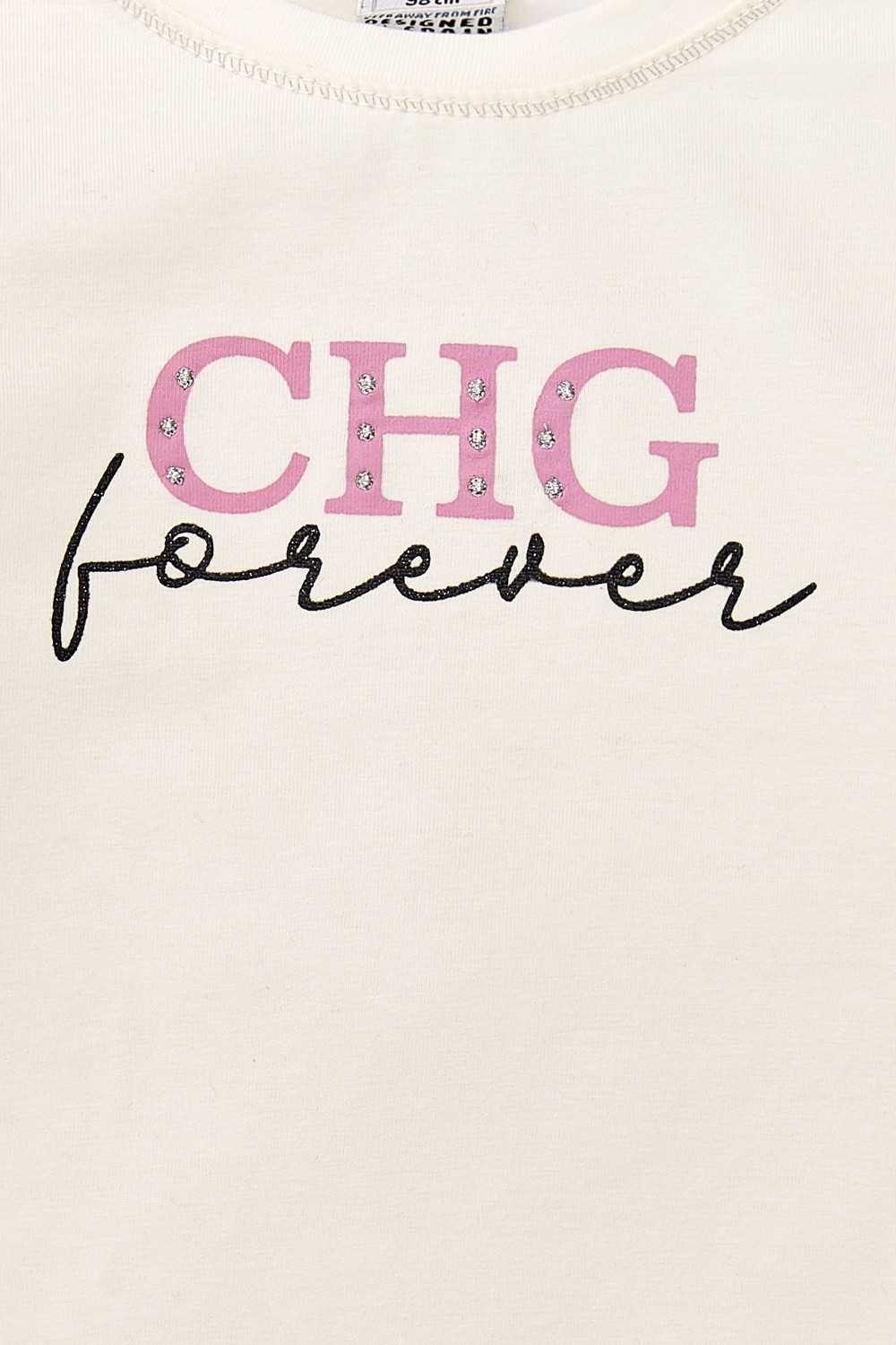 Camiseta de niña en color crudo de manga larga con mensaje CHG forever. ¡Para las fans de nuestra marca! Pertenece a la colección Jogging de Charanga.